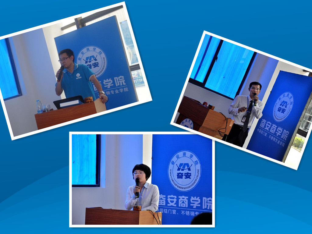 “房地產(chǎn)項目和門窗公司為什么要選擇系統(tǒng)門窗”“奮安圣羅德系統(tǒng)門窗各系列功能介紹及體驗中心現(xiàn)場實物講解”“鋁型材生產(chǎn)工藝講解及生產(chǎn)流程參觀 ”“奮安‘雙零雙百’后勤保障” “圣羅德系統(tǒng)門窗為地產(chǎn)商、門窗公司提供的增值服務(wù)”“圣羅德各系列(型材、配件、加工制作)成本分析”“門窗公司如何提升系統(tǒng)門窗的制作、安裝水平”“做系統(tǒng)門窗需要哪些設(shè)備”“奮安不銹鋼產(chǎn)品相關(guān)知識”等鋁型材、不銹鋼饕餮盛宴讓學(xué)員受益匪淺。