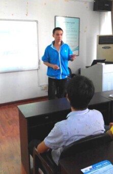 (奮安集團企宣專員張愛民在為同學(xué)們講解“月薪過萬,馬上有車”)
