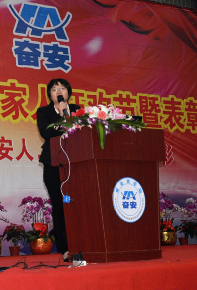 晚上,“2015年奮安家人元宵狂歡晚宴暨優(yōu)秀員工表彰大會(huì)”拉開序幕??偨?jīng)理黃秀華女士分享《感恩》及《奮安的家人很幸?!?,并在現(xiàn)場對奮安大家庭的高管們下達(dá)“全力以赴做好銷量提升、產(chǎn)量提高、品質(zhì)卓越、后勤到位等保障奮安大家庭的數(shù)千個(gè)奮安小家庭幸?!钡娜蝿?wù)。