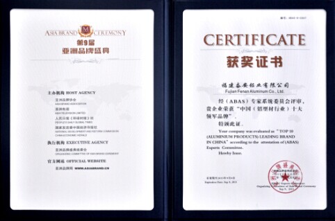 【奮安榮獲榮譽(yù)之后的責(zé)任與擔(dān)當(dāng)】:感謝奮安友人長期支持與關(guān)愛,奮安在9月9日,榮獲第九屆亞洲品牌所評選的“中國鋁行業(yè)十大領(lǐng)軍品牌”,總經(jīng)理黃秀華女士榮獲“亞洲品牌優(yōu)秀女企業(yè)家”。值此佳際,與您分享奮安人的喜悅,奮安人更加竭盡全力以 “優(yōu)質(zhì)的產(chǎn)品+優(yōu)質(zhì)的服務(wù)+愛心”的理念,來生產(chǎn)好產(chǎn)品、服務(wù)好客戶(一切只為客戶狂),以積極嚴(yán)謹(jǐn)?shù)膽B(tài)度去承擔(dān)品牌發(fā)展的責(zé)任和挑戰(zhàn),向行業(yè)巔峰攀登,造就中國鋁型材行業(yè)的領(lǐng)導(dǎo)品牌。