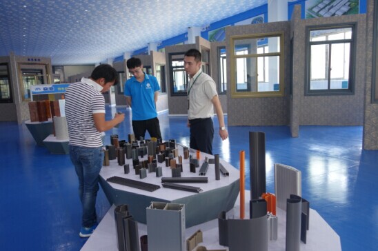 (總監(jiān)在全國最大的門窗體驗中心向貴賓作介紹)