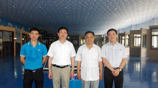 (貴賓與鄒副總、陳副總在全國(guó)最大的門窗體驗(yàn)中心合影)