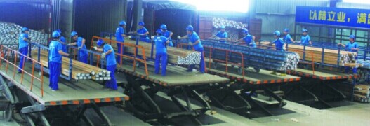 搬型材特配自動(dòng)升降機(jī)和自由調(diào)整高低的滑輪,出庫(kù)組人員通過(guò)升降機(jī)可以調(diào)到和裝車適宜的高度,再經(jīng)過(guò)滑輪把型材送至車箱內(nèi)部。這不僅節(jié)省了人力和物力,減輕了工人的勞動(dòng)強(qiáng)度,更滿足了客戶所需產(chǎn)品質(zhì)量要求的保證。這充分驗(yàn)證了“搬鋁材要像搬雞蛋一樣小心翼翼”這句奮安口頭禪。