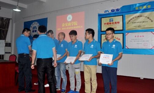 銷售副總們和技術(shù)經(jīng)理們所講解的《經(jīng)銷商的開發(fā)與管理》《銷售人員心態(tài)訓(xùn)練》《會議營銷》、《鋁型材生產(chǎn)流程及關(guān)鍵點控制》、《門窗幕墻中CAD應(yīng)用》、《斷面認(rèn)知、鋁門窗斷面設(shè)計》、《鋁合金GB5237-2008與鋁型材品質(zhì)管理》、《鋁門窗、配件等使用知識》、《工程項目營銷》、《商務(wù)談判實務(wù)》、《連鎖直營店服務(wù)管理》、《談判與溝通技巧 》、《經(jīng)銷商的開發(fā)與管理》、《實戰(zhàn)營銷》等課程,講師們運用理論與營銷實戰(zhàn)案例相結(jié)合的方式,加之幽默風(fēng)趣的話語,使我們的課堂變得格外生動。其中營銷總監(jiān)黃磊先生的《拓展分銷渠道,打造行業(yè)品牌》的授課,簡單易懂的“奮安樹”向?qū)W員們闡述了奮安集團強大有力的分銷系統(tǒng),他的“態(tài)度決定高度,思路決定出路”更是讓學(xué)員們受益匪淺。期間學(xué)員們也觀看了電影《亮劍》和《阿甘正傳》,其中一位學(xué)員分享道:堅持不懈地磨練,用高標(biāo)準(zhǔn)要求自己,是為了機會來臨時是一把最鋒刃的利劍。而這也是我們奮安人所追求的“亮劍精神”!另外,俞向輝老師的《優(yōu)秀員工,幸福人生》也是讓學(xué)員們意識到在職場上以主人翁的心態(tài),懷揣一顆感恩之心前行的重要意義。