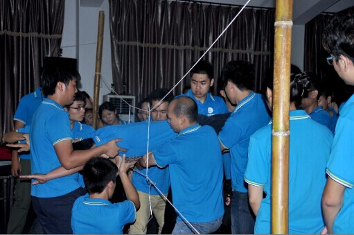 7月7日上午,在李教練的指揮下我們的團隊素質(zhì)拓展訓(xùn)練順利開展。開場“10秒的優(yōu)秀”讓學(xué)員們信心倍增,更明白了突破自我的重要性。精彩和令人印象深刻的“集中營電網(wǎng)逃生”,從一個人在戰(zhàn)斗到最后的一個團隊團結(jié)一心的共進退,到最后全部成員的順利逃生,這是一個團隊共同努力的成果,掌聲是屬于每一位學(xué)員的。更有甚者,為成功營救最后一名隊員,大家集體解下皮帶,串聯(lián)起“營救生命線”,綁在隊員的腿部上以保持其身體的平衡讓他成功翻越電網(wǎng),一個簡單的動作凝聚的是整個團隊智慧的結(jié)晶,是心靈上的團結(jié),一種幽默搞笑卻又讓人難以忘懷的“皮帶之情”。最后的主題曲“我們是一家人”鏗鏘有力地為這次的素質(zhì)拓展劃上了圓滿的句號,也響應(yīng)了我們“奮安家人”的企業(yè)文化。