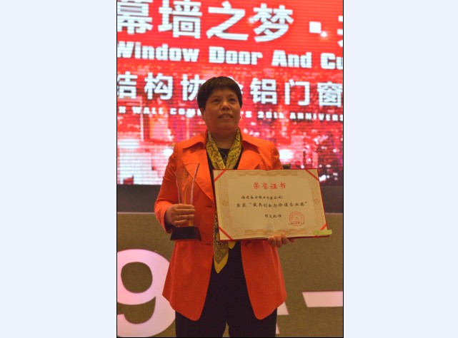 奮安集團(tuán)被中國建筑金屬結(jié)構(gòu)協(xié)會(huì)鋁門窗幕墻委員會(huì)評(píng)為“最具創(chuàng)新與價(jià)值企業(yè)”,并在2014年3月8日中國建筑金屬結(jié)構(gòu)協(xié)會(huì)鋁門窗幕墻委員會(huì)成立20周年盛大慶典上由中國建筑金屬結(jié)構(gòu)協(xié)會(huì)副秘書長(zhǎng)黃圻給總經(jīng)理黃秀華女士頒發(fā)證書及獎(jiǎng)杯。