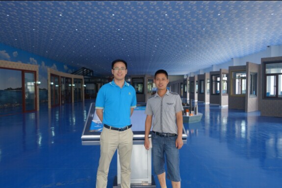 (貴賓與石副總在全國最大門窗體驗(yàn)中心合影)