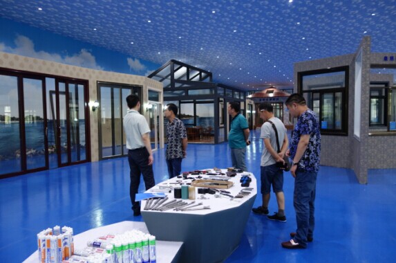 (總監(jiān)在全國(guó)最大的門(mén)窗體驗(yàn)中心向貴賓作介紹)