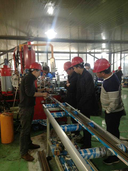 貴賓參觀我司先進(jìn)的生產(chǎn)工藝流程,考察型材生產(chǎn)各道工序。目前我司擁有數(shù)十臺(tái)先進(jìn)的擠壓設(shè)備,擁有多條高效能、高品質(zhì)的立式噴涂線(xiàn)和立式木紋噴涂線(xiàn)、立式氧化電泳線(xiàn)、自動(dòng)包裝線(xiàn)、自動(dòng)輸送線(xiàn)等先進(jìn)的生產(chǎn)設(shè)備。全程采用電腦自動(dòng)化控制、品質(zhì)卓越。
