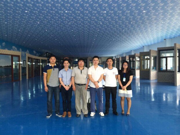 (貴賓們與梁總、林秘書在全國(guó)最大門窗體驗(yàn)中心合影)