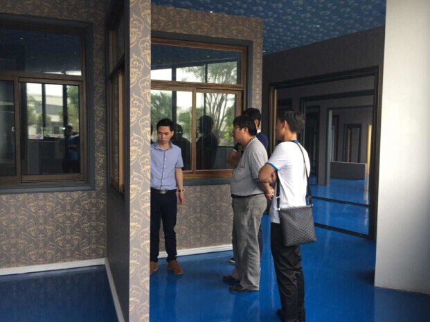貴賓繼而參觀全國(guó)最大的鋁門窗體驗(yàn)中心,該體驗(yàn)中心占地2000多平方米,中心里面陳列著奮安最新推出的大量的新窗型、新系統(tǒng)窗、新表面處理:如仿古代的古鎮(zhèn)門窗、仿古欄桿、歐式系統(tǒng)門窗、現(xiàn)代窗、酒店專用窗,以及超細(xì)粉噴涂、4D木紋、電噴表面、特色鋁單板、鋁模板等一系列新表面、新產(chǎn)品。