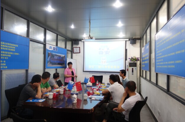 總經(jīng)理先后向貴賓介紹企業(yè)發(fā)展概況、我司獨(dú)具特色的優(yōu)勢(shì)服務(wù)和優(yōu)質(zhì)的鋁合金型材。我司型材生產(chǎn)全部采用優(yōu)質(zhì)原材料,工藝嚴(yán)謹(jǐn),層層把關(guān);此外,全亞洲第一條月產(chǎn)量5000T全自動(dòng)立式氧化電泳線已正式全面投產(chǎn),全程采用電腦自動(dòng)化控制,正所謂設(shè)備先進(jìn)、品質(zhì)卓越。我司還提供獨(dú)具特色的優(yōu)勢(shì)服務(wù)——奮安門窗終身管家服務(wù)。