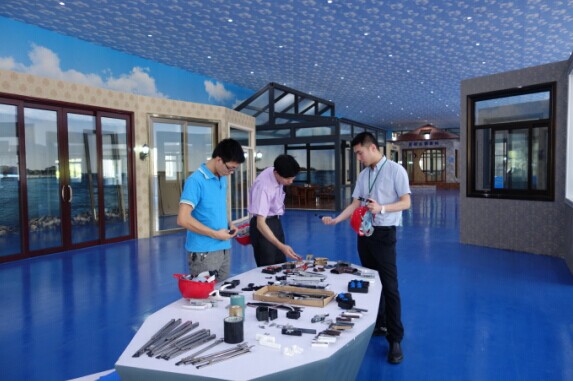 (貴賓與黃總監(jiān)在全國最大的門窗體驗中心合影)
