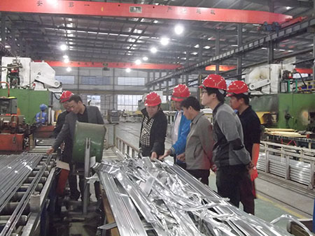 貴賓依次參觀我司型材生產的各個車間。我司型材生產全部采用優(yōu)質原材料,保證了成品鋁材的卓越品質。此外還擁有多條立式噴涂線、立式氧化電泳線、自動包裝線、自動輸送線等一系列先進的生產設備。設備先進,品質卓越。
