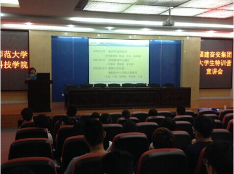 6月11日下午,奮安集團(tuán)一行四人前往福建師范大學(xué)閩南科技學(xué)院進(jìn)行現(xiàn)場招聘,為奮安商學(xué)院閩科院經(jīng)管系大三應(yīng)屆畢業(yè)生開設(shè)大學(xué)生特訓(xùn)營做準(zhǔn)備。在該學(xué)院邱院長、經(jīng)管系陳主任、劉主任和校企合作辦劉主任的大力支持下,于下午14:30在學(xué)校圖書館一樓會(huì)議室舉辦了現(xiàn)場招聘會(huì),此次前來參加招聘會(huì)的學(xué)生超過100人。奮安集團(tuán)人資總監(jiān)陳凌芹女士詳細(xì)向大家介紹了我司的企業(yè)發(fā)展?fàn)顩r,現(xiàn)場互動(dòng)頻頻,氣氛融洽。