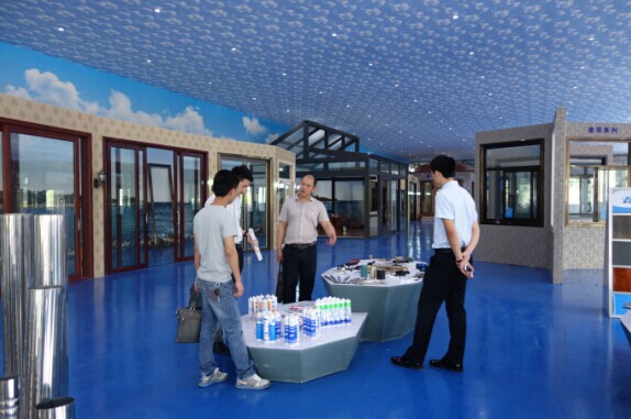 (貴賓與吳經(jīng)理在奮安全國最大的門窗體驗(yàn)中心向貴賓合影)