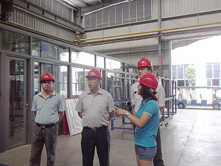 陳副總詳細地向各位領導做一一介紹:我司型材生產(chǎn)全部采用優(yōu)質(zhì)原材料并嚴格把控各道工藝,保證了成品鋁型材的卓越質(zhì)量;目前,我司擁有多條立式噴涂線、立式氧化線、自動輸送線、自動包裝線等等先進的設備和奮安出庫時嚴格采用三道驗磅工序,深入貫徹“零磅差”的經(jīng)營理念,做到誠信經(jīng)營;并且與多家物流公司合作,擁有多種物流配送方式來滿足客戶的需求;此外,我司還提供從型材到玻璃膠、鎖、輪子等配套優(yōu)質(zhì)配件的一條龍服務,解決了客戶一站式購買的難題,并提供良好的售后服務。